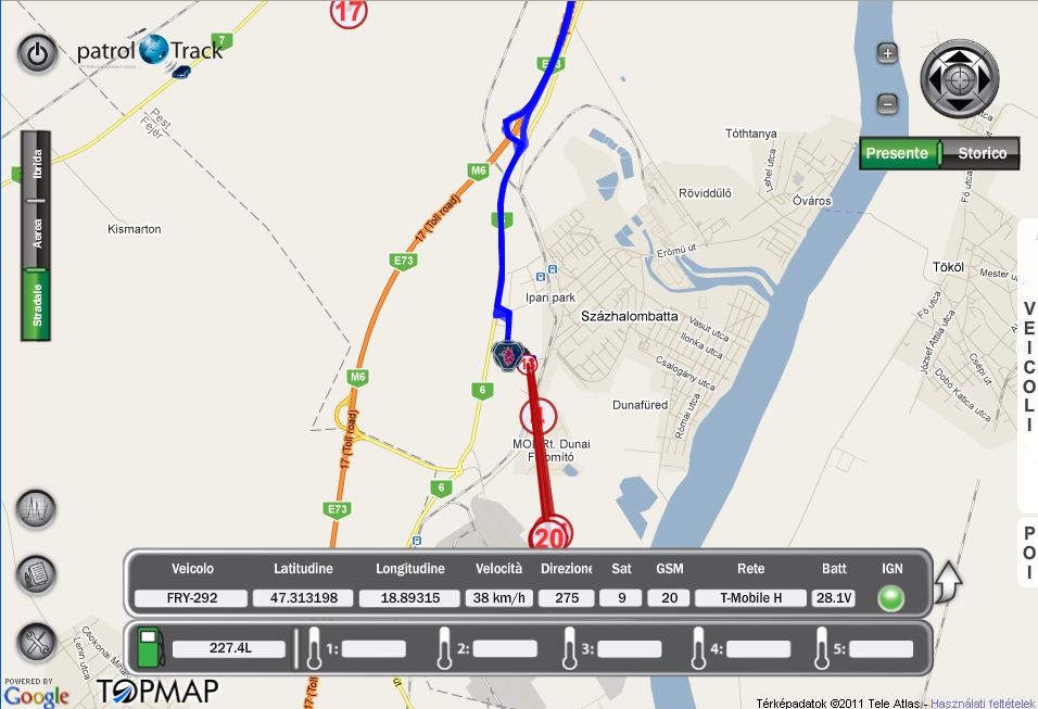 Quasi dappertutto, ma specialmente nelle spedizioni, il controllo del livello di carburante dei veicoli provoca il più grande problema per il proprietario della società. Per controllare il livello di carburante nel veicolo è disponibile un sonda supplementare che permette di controllarne il consumo. Il sistema rappresenta graficamente l'aumento e calo del livello di combustibile mostrando il consumo "improvvisamente aumentato" per il proprietario del veicolo. Il sistema di patrolTrack è in grado compilare in elenco circa un determinato periodo con i seguenti dati: data, Indirizzo, Livello Combustibile prima del rifornimento, livello di Combustibile dopo il rifornimento (quantità aggiunta). Basato sui dati citati, è possibile costruire lo storico con un semplice clic e può essere comparato allo scontrino del rifornimento dalla stazione di carburante.