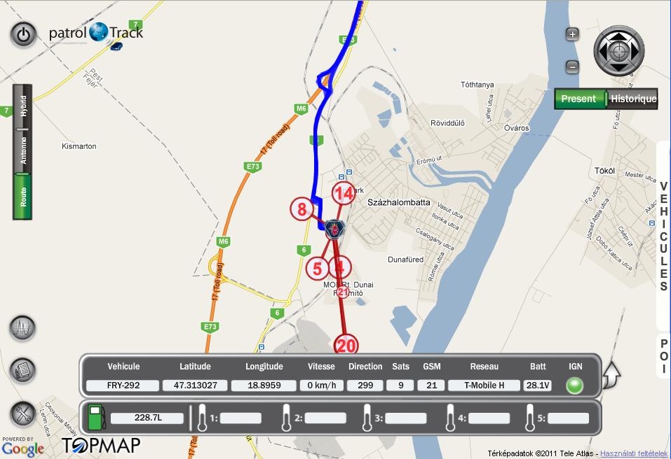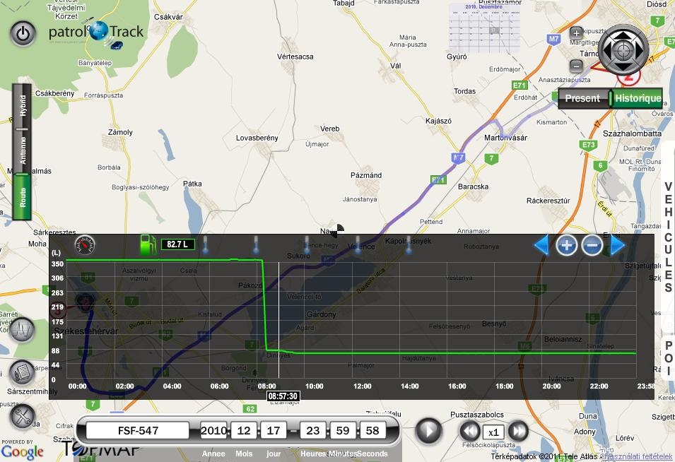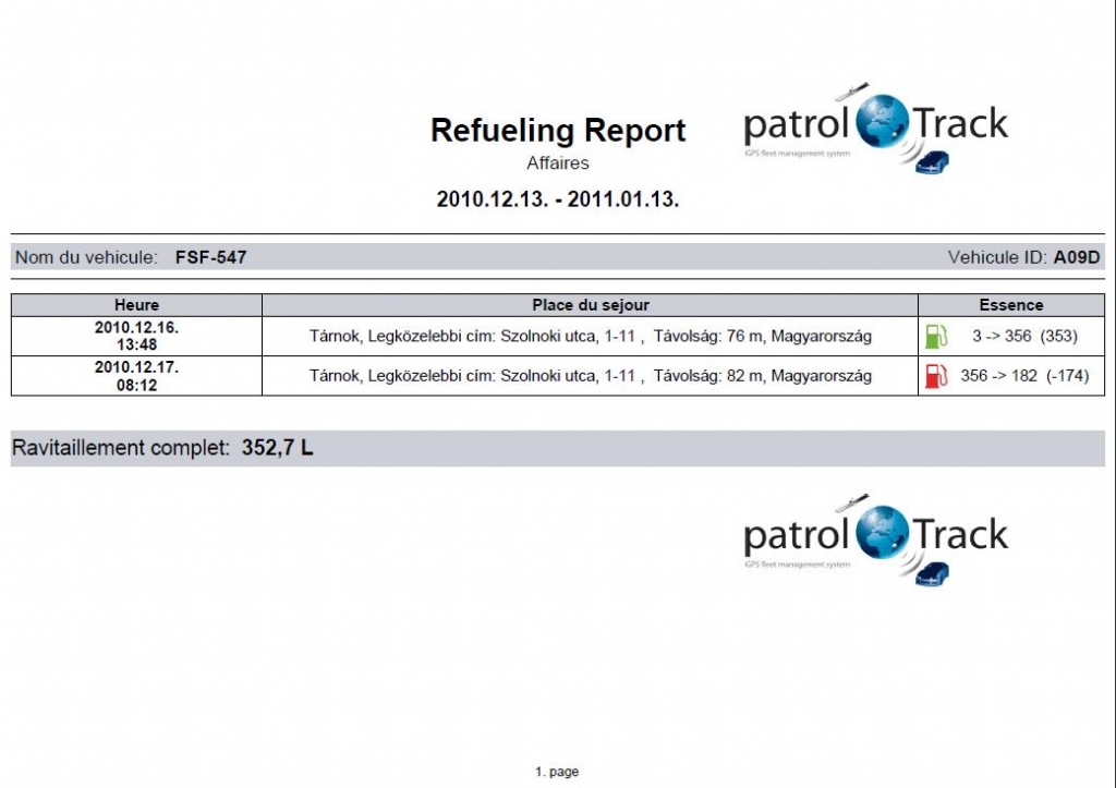 Le système de repérage „patrolTrack” est capable de fournir pour une période donnée une liste incluant les points suivants: date, adresse, niveau de carburant avant remplissage,