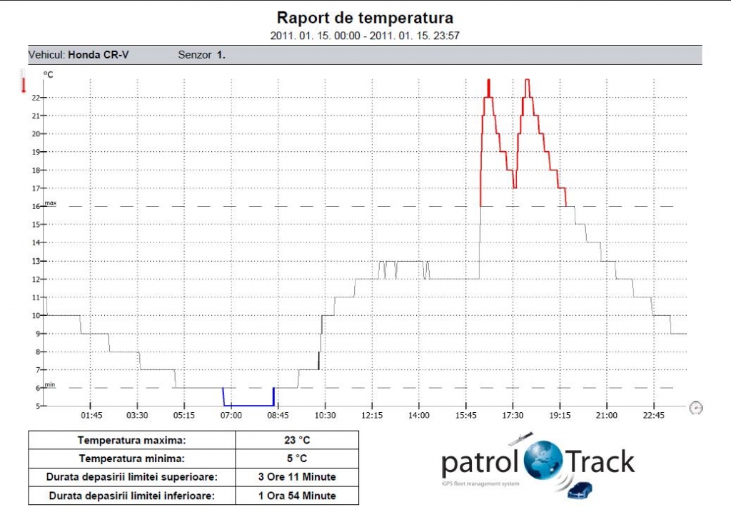 De obicei utilizarea senzorilor optionali de temperatura se utilizeaza la camioane frigorifice, pentru ca monitorizarea permanenta a temperaturi din spatiul de frig sa poata fi asigurata. Dupa instalarea senzorilor se definesc limitele minime, respectiv maxime de temperatura necesara, dupa care, t inand cont de aceste valori, sistemul elaboreaza o diagrama pe ziua dorita. Se poate observa astfeldaca apar abateri de valori fata de cele stabilite, deoarece pe diagrama fluctuatiile de temperatura pozitive, respectiv negative, apar in culori difetite.